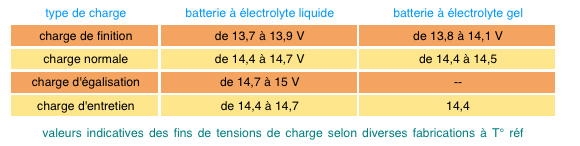 Régimes et tensions de recharge en technique photovoltaïque. |