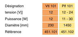 * : simple. ** : facile. *** : compliqué. (1) : par pas de 5°. (2) : à façon. |