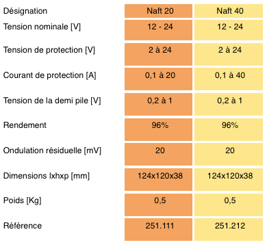 Caractéristiques de l'électronique Naft : • Seuils courant, tension et tension demipile réglables. |